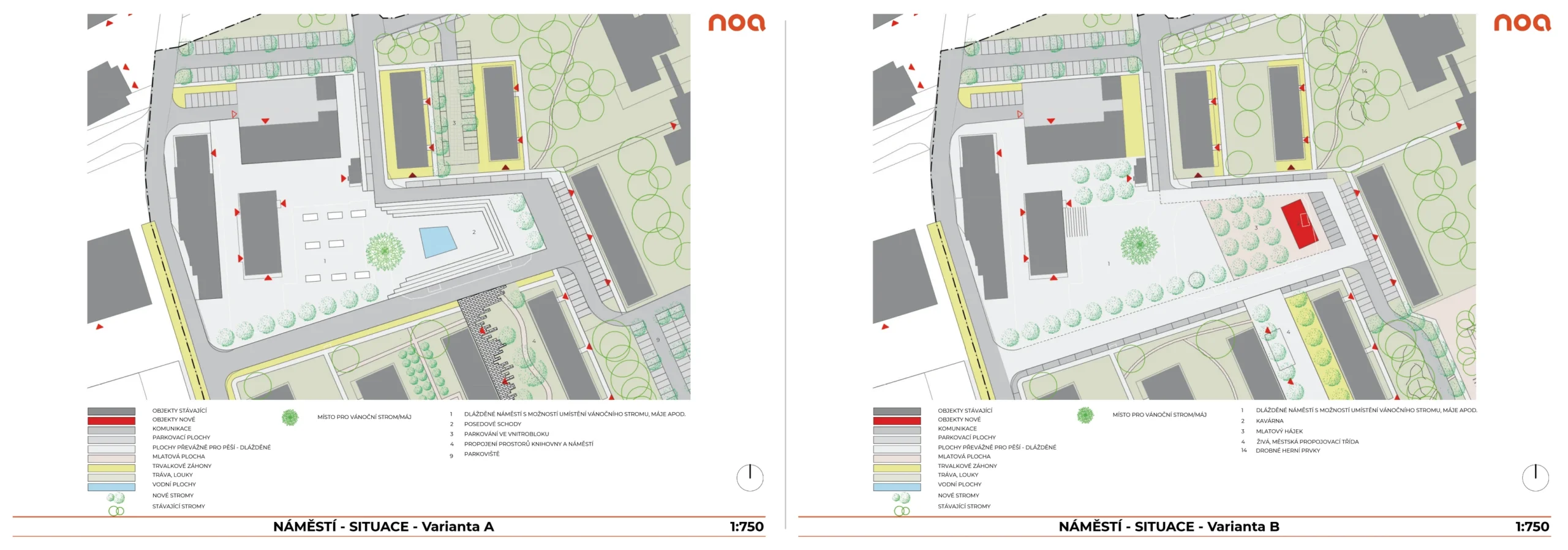 🅱 Varianta B – více zeleně, kavárna a listnatý hájek