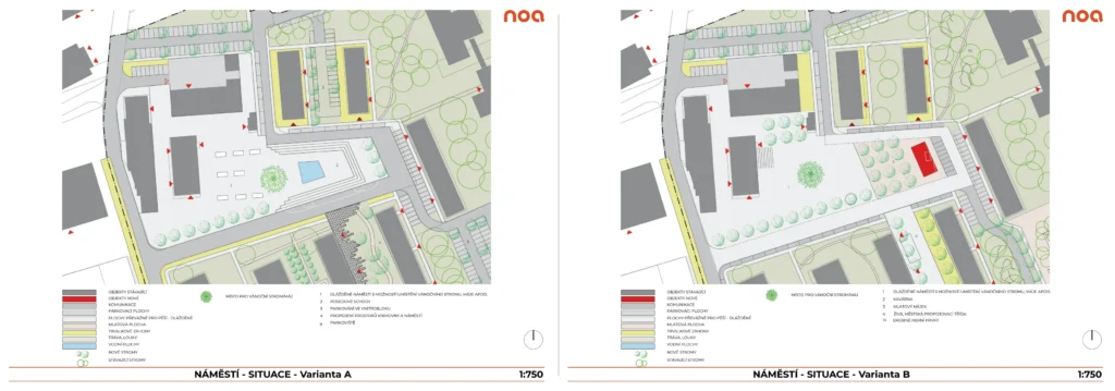Urbanistická koncepce nabízí dvě koncepční varianty úprav náměstí u restaurace U Zbojníka – varianty A a B. Obě varianty navrhují zvětšit plochu náměstí využitím prostranství mezi domy 303-304 a 313-315. Zjišťujeme, zda rozsah a které prvky nového náměstí by se vám líbily či nikoli.